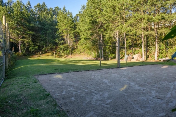 • Trilha na mata, campo de futebol e cancha de beach tennis